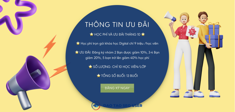 Trong số các trung tâm nổi bật hiện nay, Đào tạo SEO User là địa chỉ được nhiều học viên đánh giá cao nhờ phương pháp “học thật – làm thật – lên top thật”. Học viên được thực hành trên website thật, được hướng dẫn trực tiếp bởi giảng viên có hơn 13 năm kinh nghiệm trong ngành SEO & Digital Marketing. Giáo trình tại đây được cập nhật liên tục theo các thay đổi thuật toán của Google, giúp học viên nắm vững kỹ năng SEO tổng thể và tư duy chiến lược.